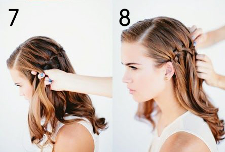 7. Zo zapletaným pokračuj ku uchu a tam vlasy zachyť sponkou alebo gumičkou.