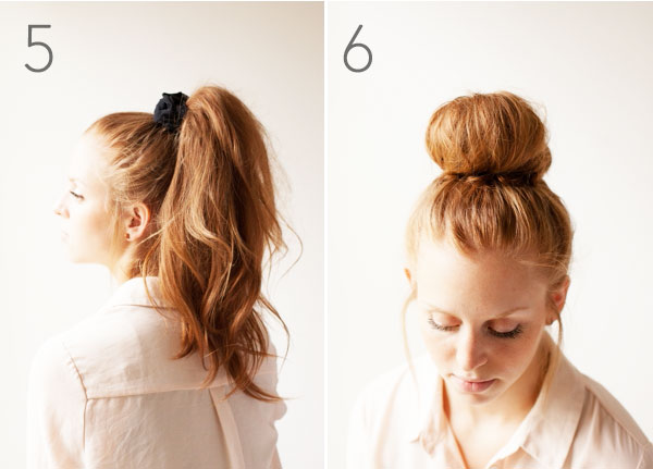 6. Obtoč ho obolo gumičky, aby vznikol drdol a pripni sponkami.