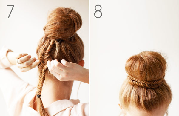 8. Na záver rybí cop obtoč okolo drdolu a pripni sponkami. Na koniec môžeš účes zafixovať lakom na vlasy.
